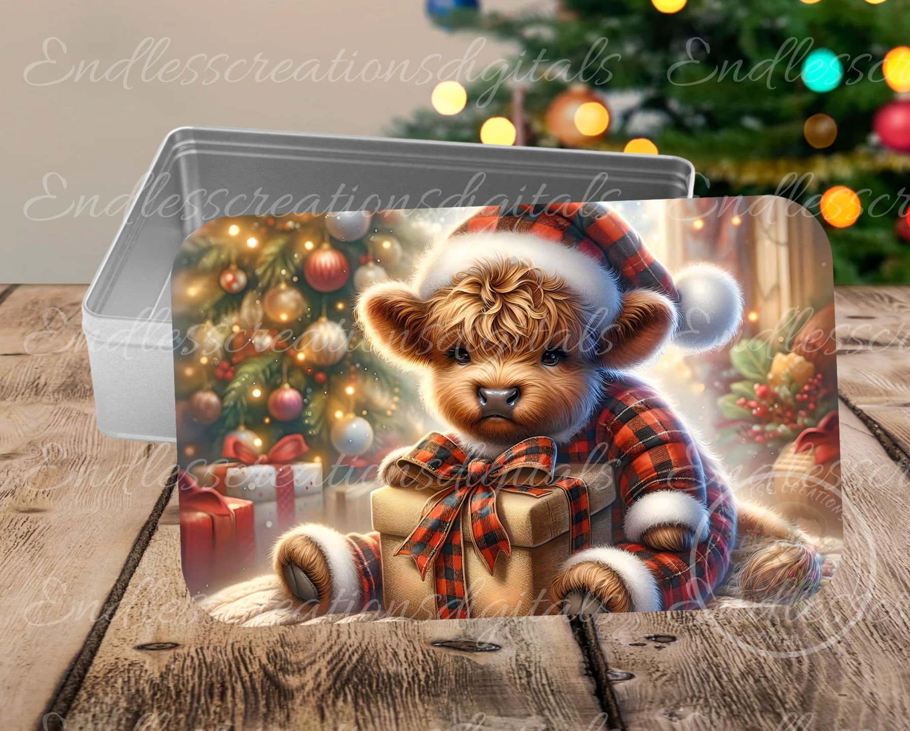 ADORABLE CHRISTMAS BABY HIGHLAND COW RECTANGLE/TINS