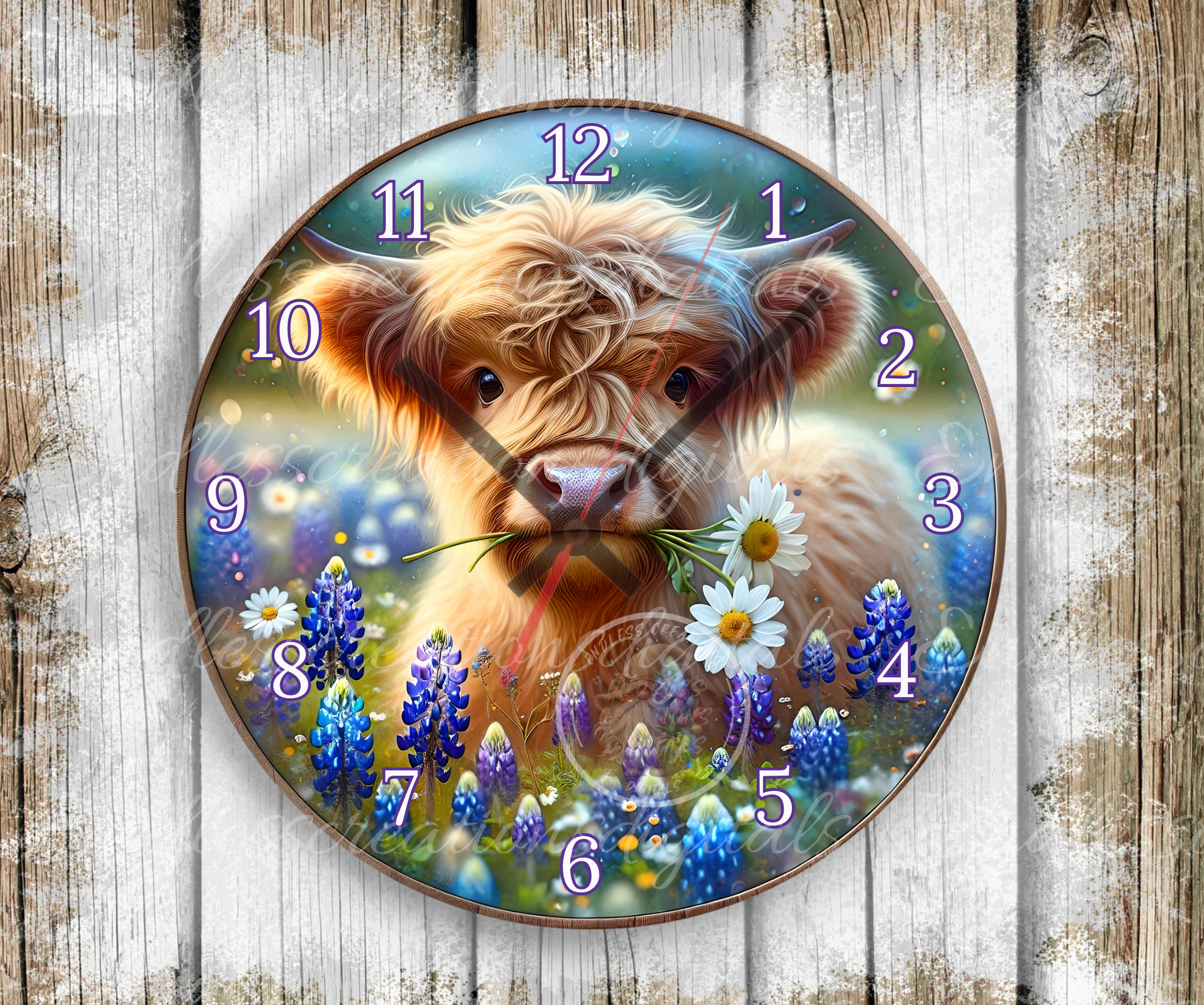 BABY HIGHLAND BLUEBONNETS CLOCK DESIGN