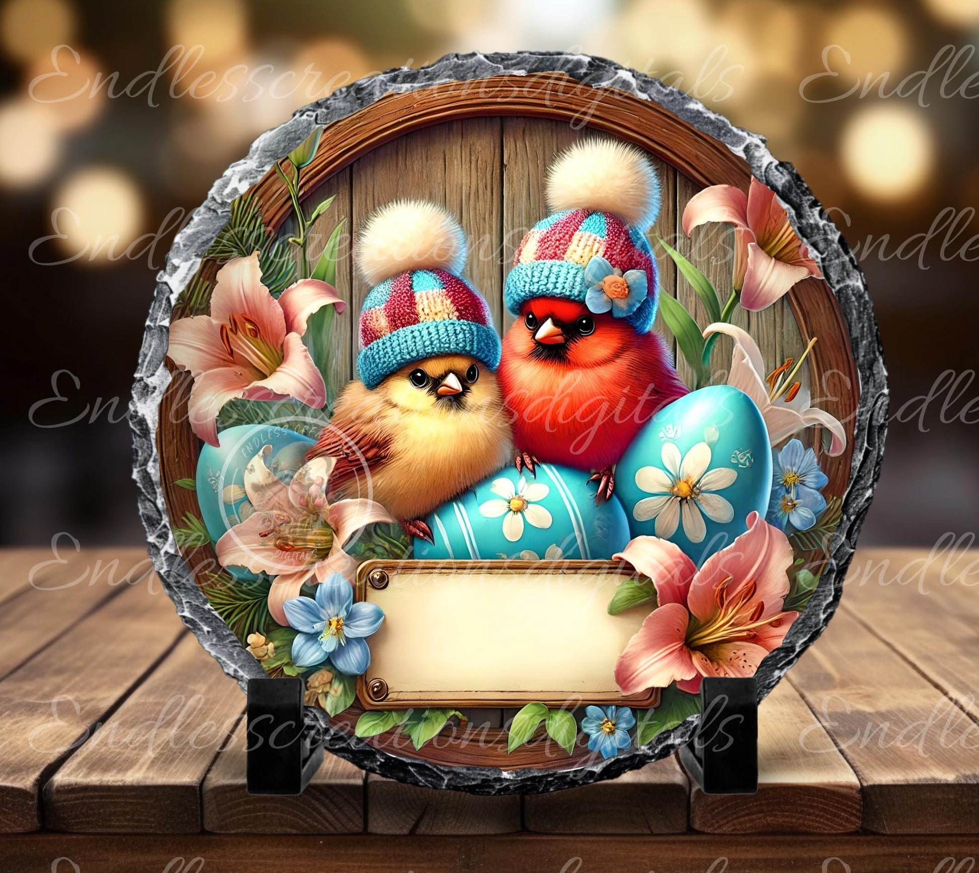 EASTER BABY CARDINALS Wreath Sign, door hanger, slate for sublimation high resolution 2 files for download 1 add your own text