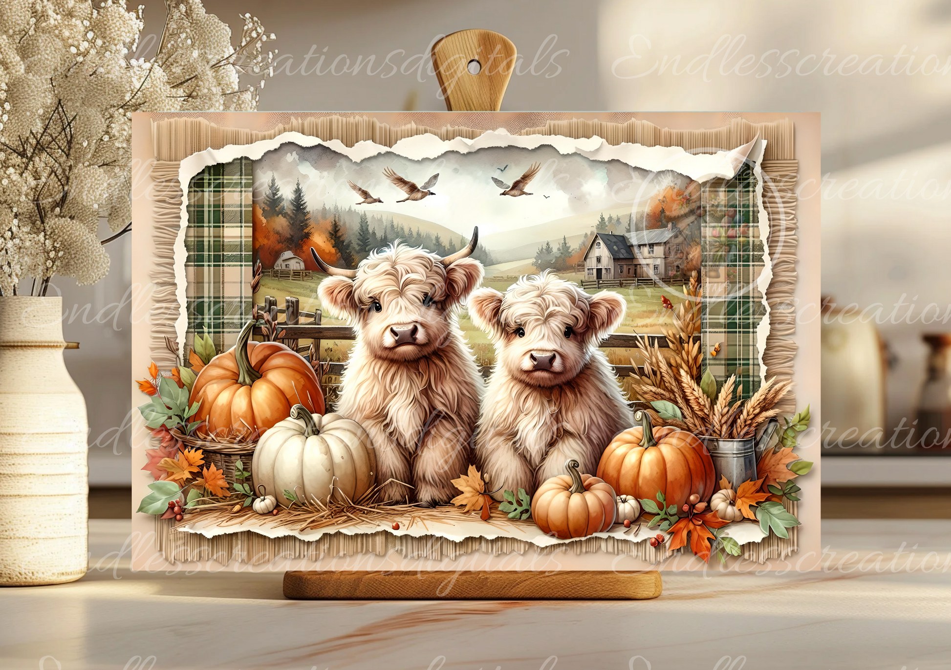 CUTE BABY HIGHLAND COWS DESIGN WILL LOOK STUNNING ON YOUR NEXT SUBLIMATION RECTANGLE TINS, SLATES OR CUTTING BOARDS IMAGES ARE OF EXCELLENT HIGH QUALITY 330/600 DPI, SIZED 7.7 X 5". 2 FILES INCLUDED, 1 SIZED FOR TINS AND 1 SIZED FOR CUTTING BOARD