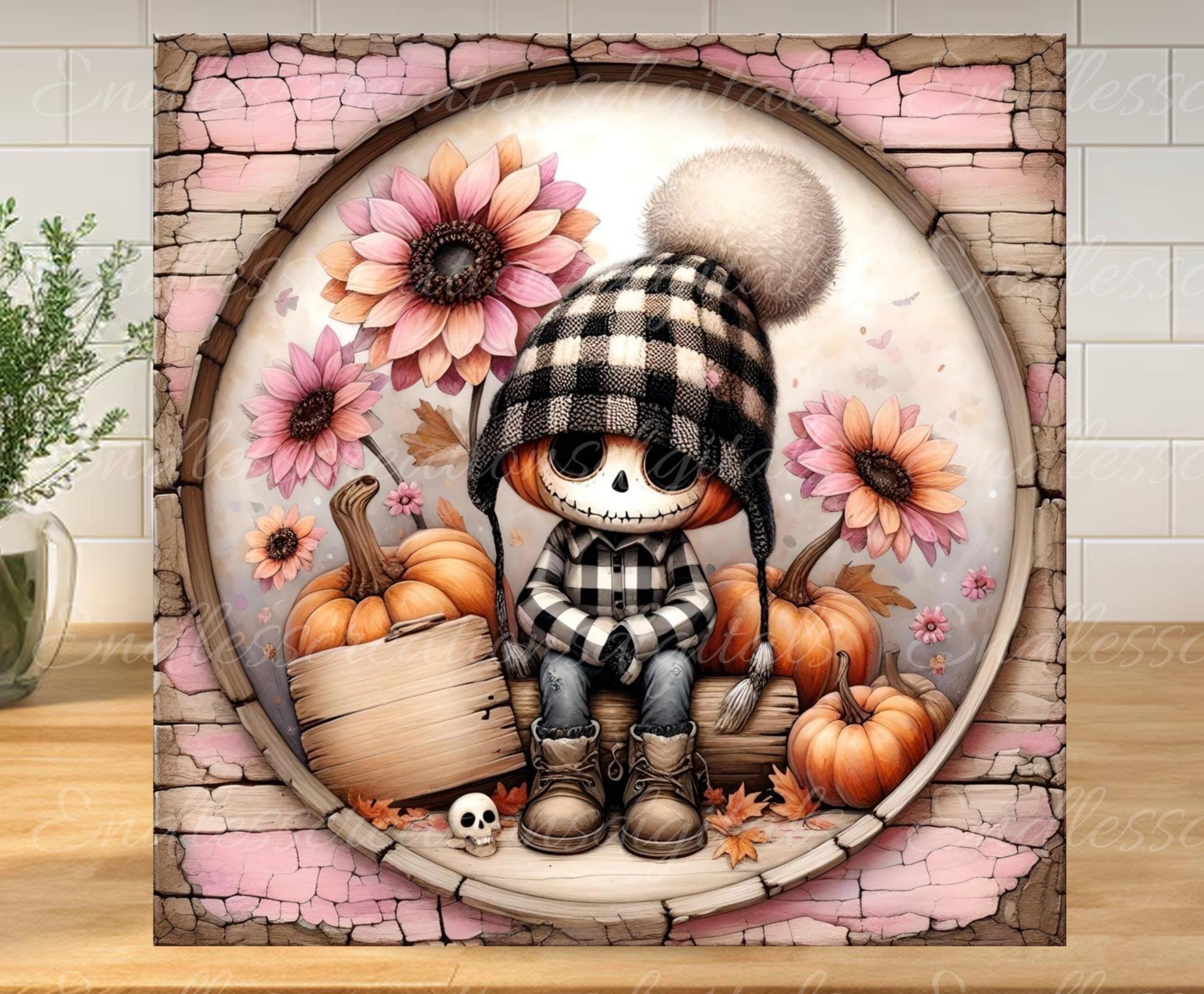FALL PINK ZOMBIE Square Door hanger, wreath sign, square cutting board, for sublimation high resolution 2 files, 1 add your own text