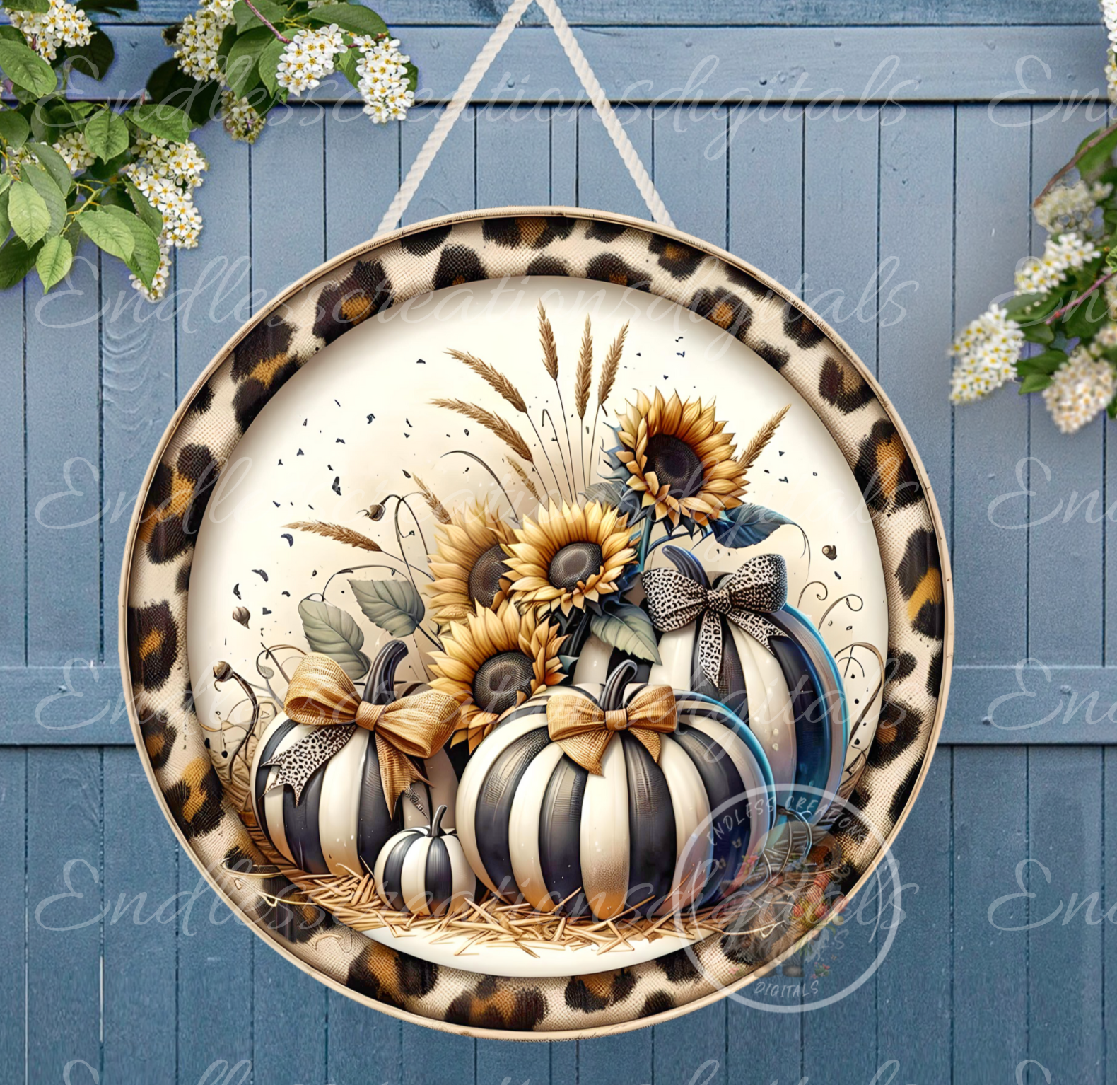 FALL LEOPARD PUMPKIN DESIGN WILL LOOK STUNNING ON YOUR NEXT SUBLIMATION PROJECT. USE ON GLASS CUTTING BOARDS, ROUND DOOR HANGERS, WREATH SIGNS, ROUND TINS, ORNAMENTS, GIFT TAGS. IMAGES ARE OF EXCELLENT HIGH QUALITY 300 DPI, CAN BE RESIZED FROM 12' TO 3". COMES WITH 2 DOWNLOADS INCLUDING 1 BLANK TO CUSTOMIZE WITH YOUR OWN TEXT