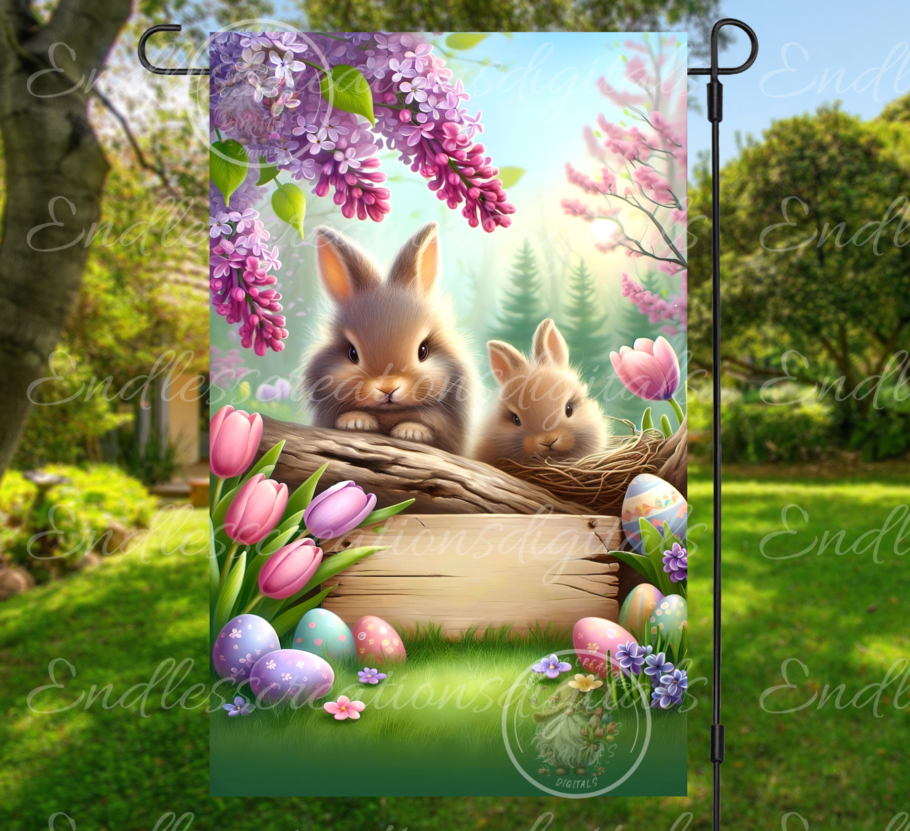 HAPPY EASTER SPRING BUNNIES GARDEN FLAG