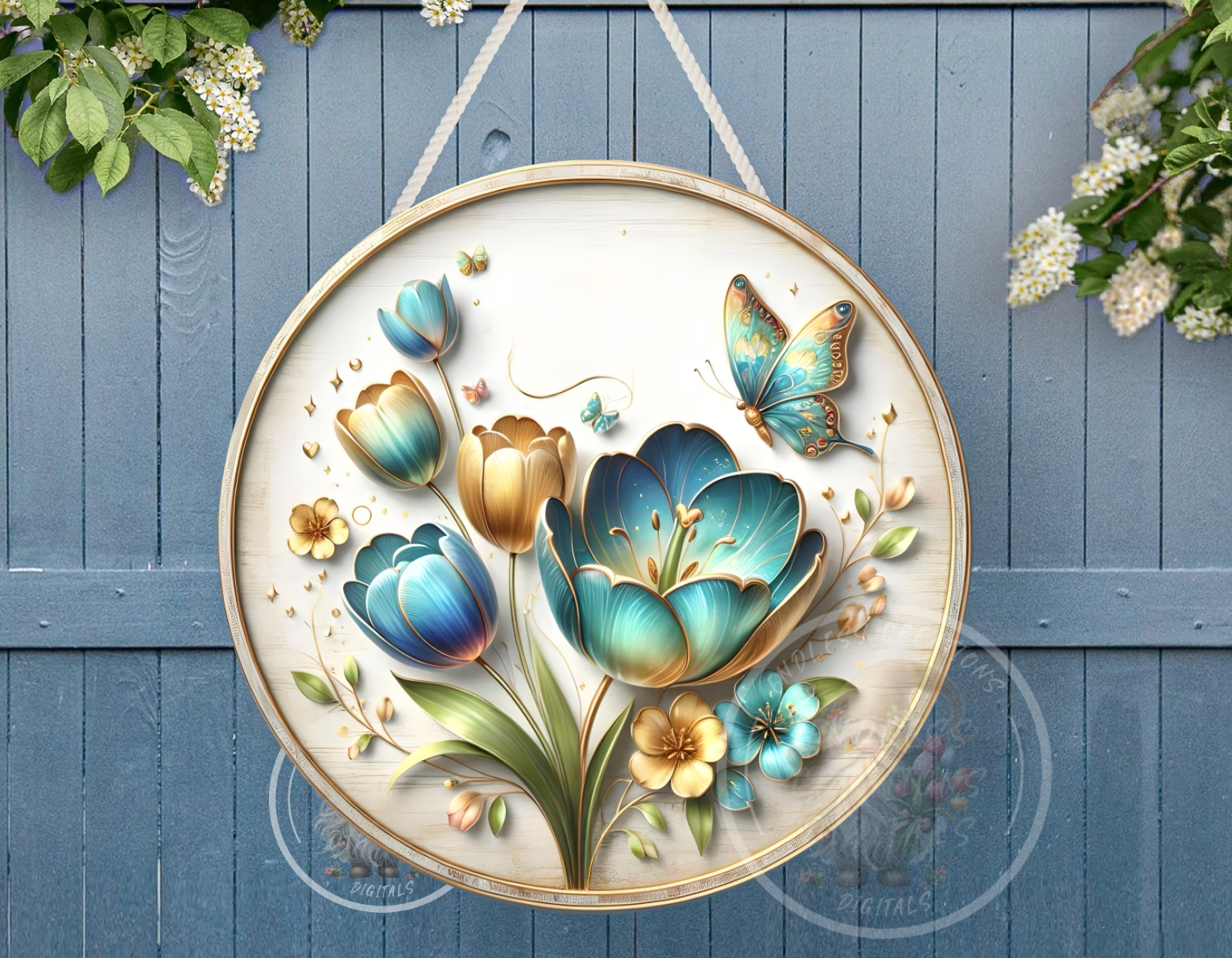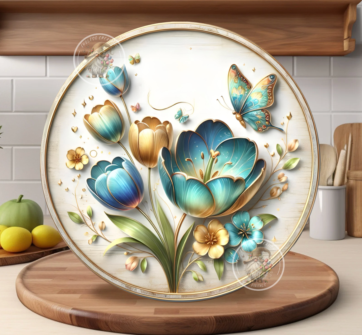 BEAUTIFUL METALLIC LOOK SPRING TULIPS DESIGN WILL LOOK STUNNING ON YOUR NEXT SUBLIMATION PROJECT. USE ON GLASS CUTTING BOARDS, DOOR HANGERS, WREATH SIGNS, COASTERS!! IMAGES ARE OF EXCELLENT HIGH QUALITY 300 DPI COMES