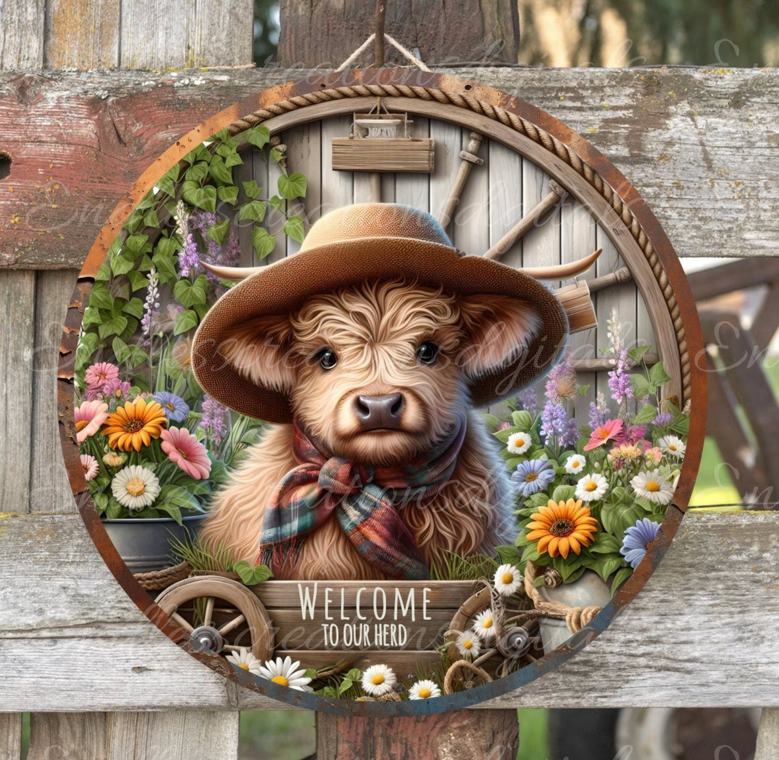 HIGHLAND COWS SUBLIMATION door hanger, wreath sign png, for sublimation high resolution 2 files with 1 add your own text