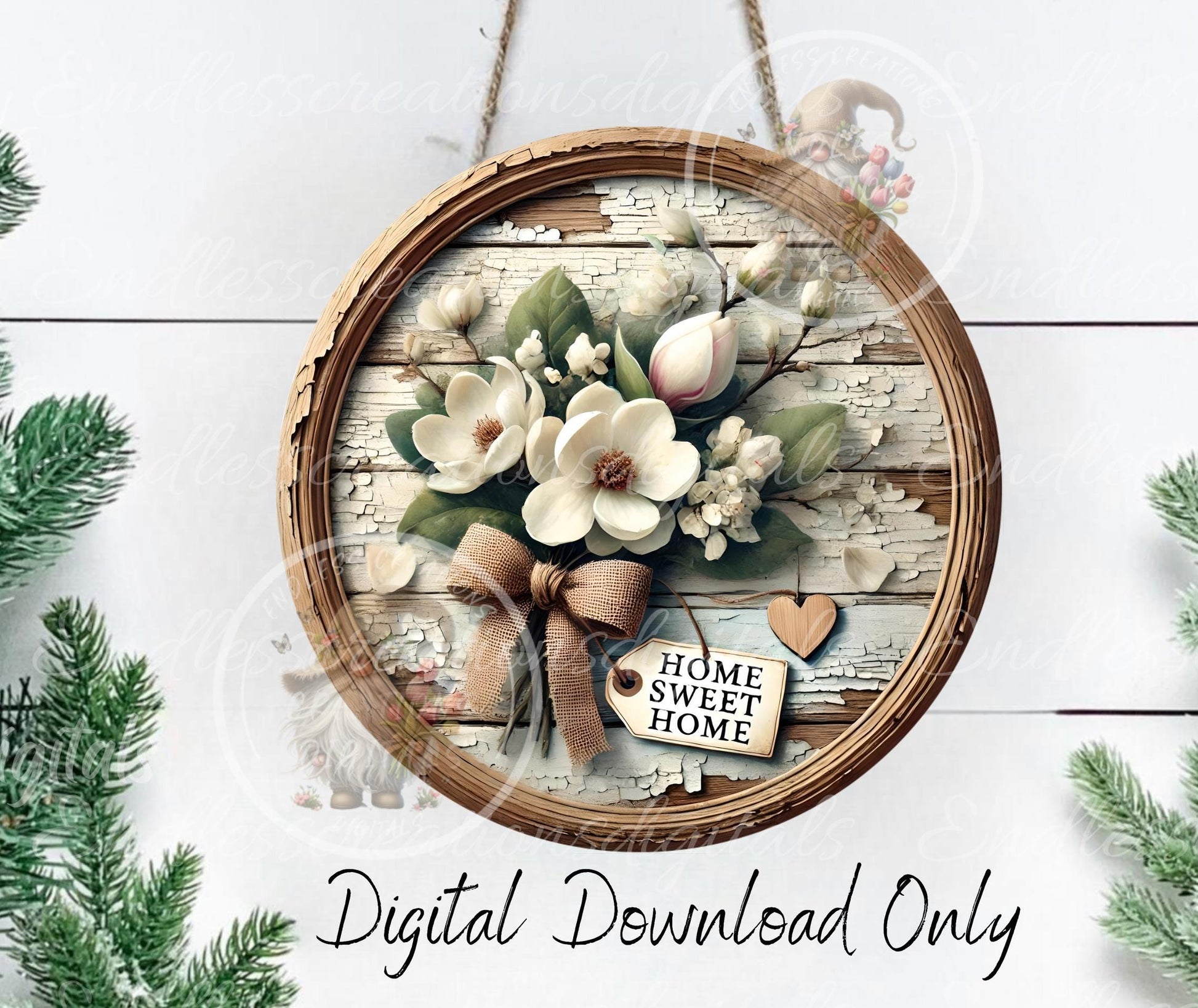 HOME SWEET HOME Spring door hanger keychain, round slate, for sublimation high resolution can be resized, 2 files 1 blank, resize