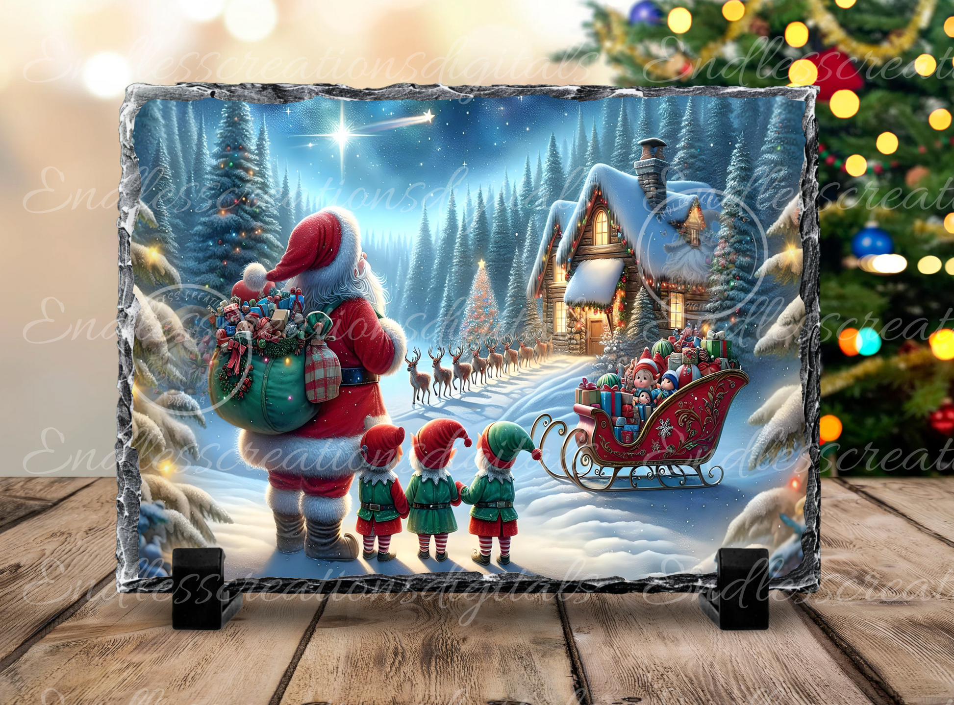 SANTA AND ELVES DESIGN WILL LOOK STUNNING ON YOUR NEXT SUBLIMATION PROJECT. USE ON GLASS CUTTING BOARDS, SLATES, TINS AND SOAP DISPENSERS. IMAGES ARE OF EXCELLENT HIGH QUALITY 300 DPI, COMES WITH 2 FILES INCLUDING A BLANK SO YOU CAN ADD YOUR OWN TEXT