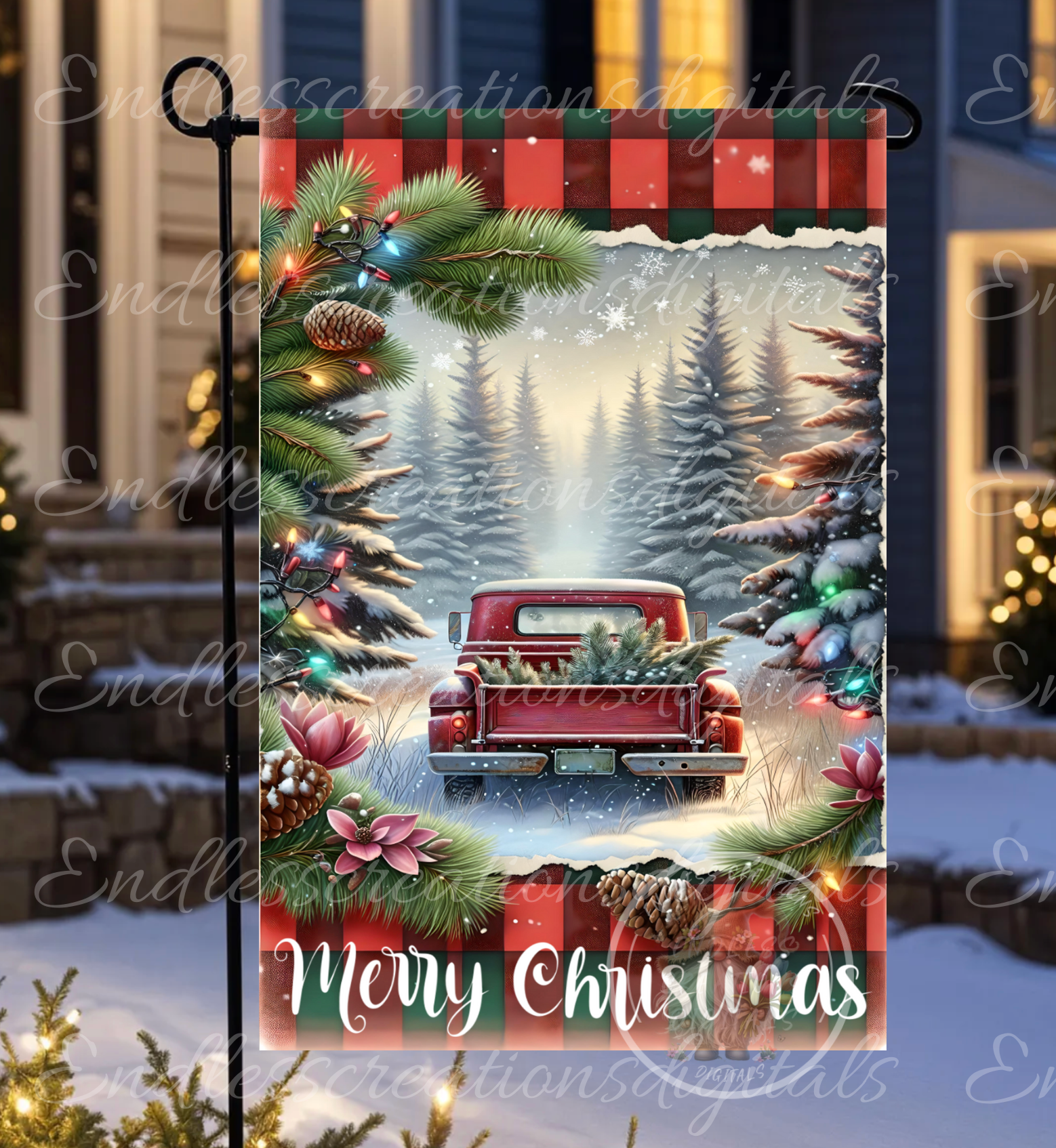 RED TRUCK CHRISMTAS GARDEN FLAG