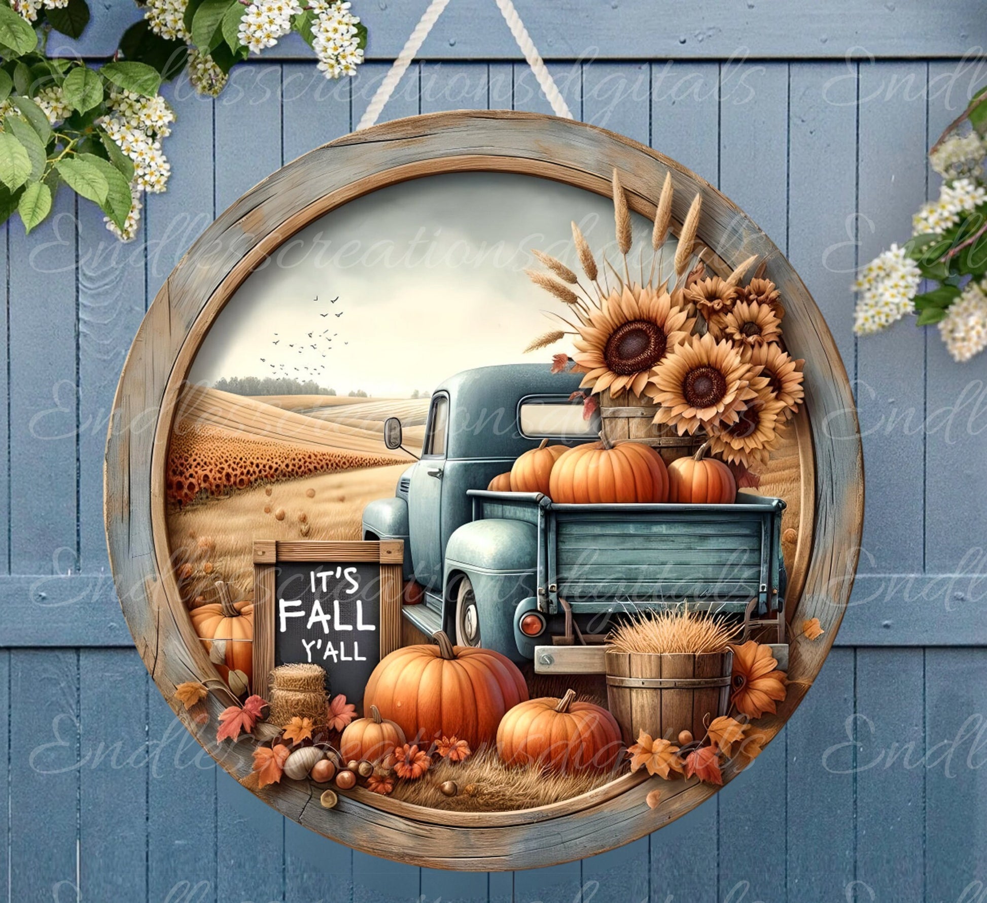ROUND FALL DOOR hanger, wreath sign, cutting board png, for sublimation high resolution 2 files, 1 add your own text