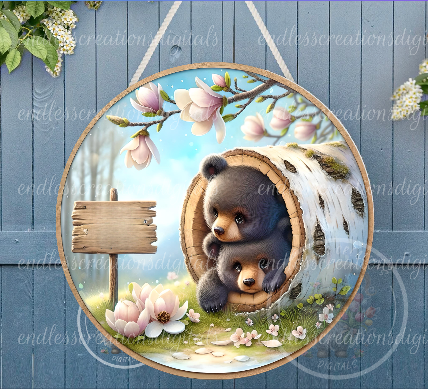 SPRING BABY BLACK BEARS FLORAL DESIGN WILL LOOK STUNNING ON YOUR NEXT SUBLIMATION PROJECT. USE ON GLASS CUTTING BOARDS, ROUND DOOR HANGERS, WREATH SIGNS, ORNAMENTS, GIFT TAGS. IMAGES ARE OF EXCELLENT HIGH QUALITY 300 DPI COMES WITH 2 AMAZING DOWNLOADS INCLUDING 1 BLANK