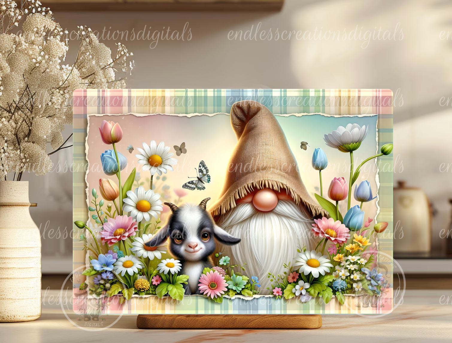 CUTE SPRING FLORAL GNOME AND GOAT DESIGN WILL LOOK STUNNING ON YOUR NEXT SUBLIMATION PROJECT. USE ON GLASS CUTTING BOARDS, SLATES, PLACEMATS OR ANY RECTANGLE BLANK! CROP THEM TO USE ON COASTERS!!