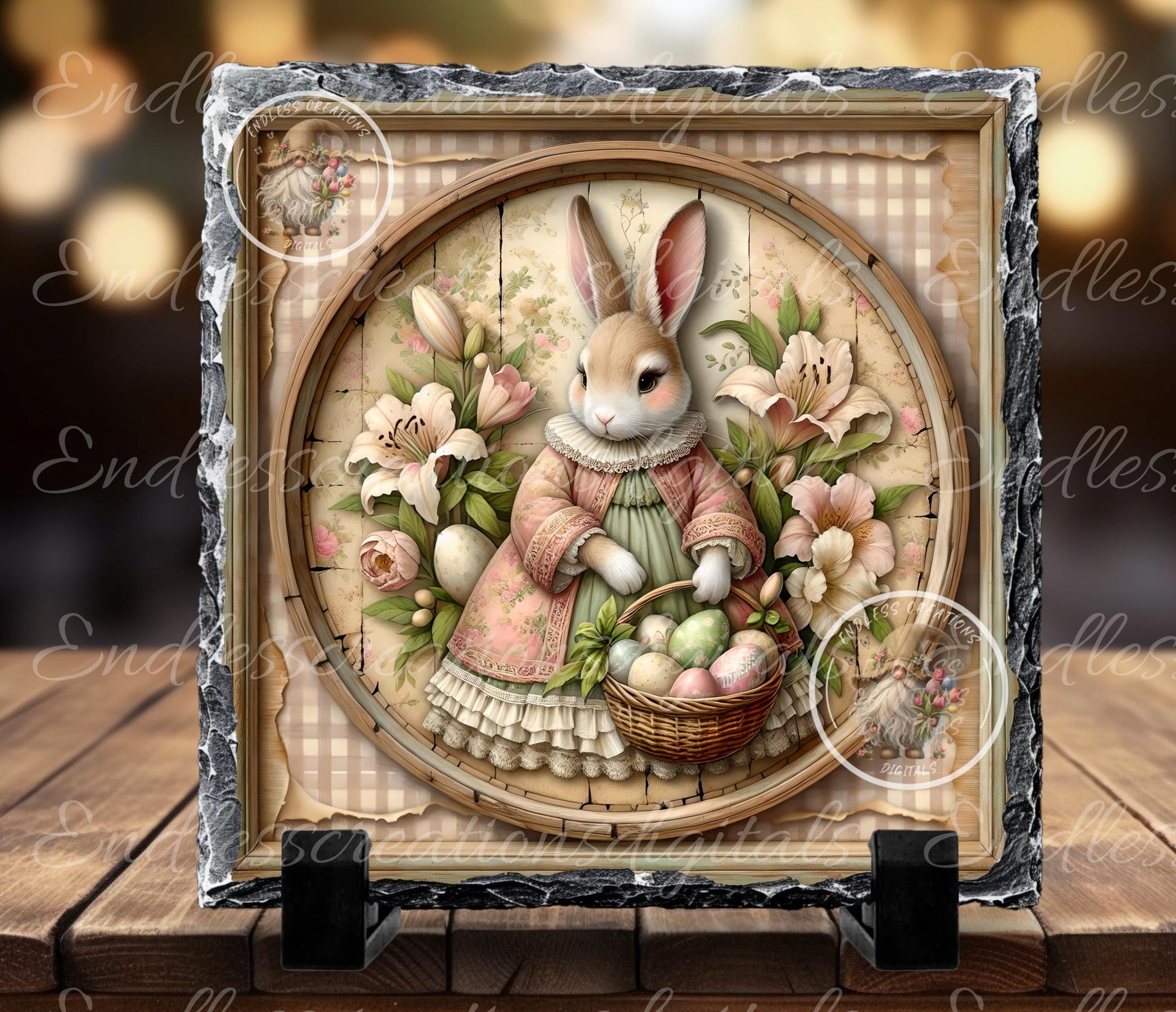CUTE VINTAGE GIRL RABBIT FLORAL FRAMED SQUARE IMAGE THAT WILL LOOK ABSOLUTELY STUNNING ON YOUR NEXT SUBLIMATION PROJECT OF A GLASS CUTTING BOARD PROJECTS, DOOR HANGERS, WREATH SIGNS OR SLATES. IMAGE IS OF EXCELLENT HIGH QUALITY 300 DPI