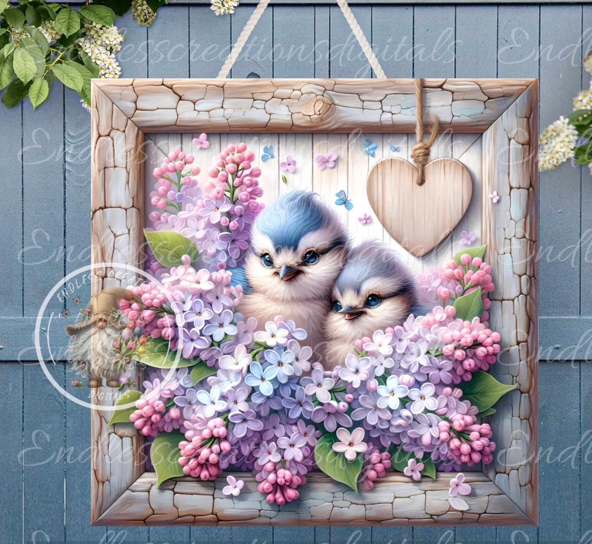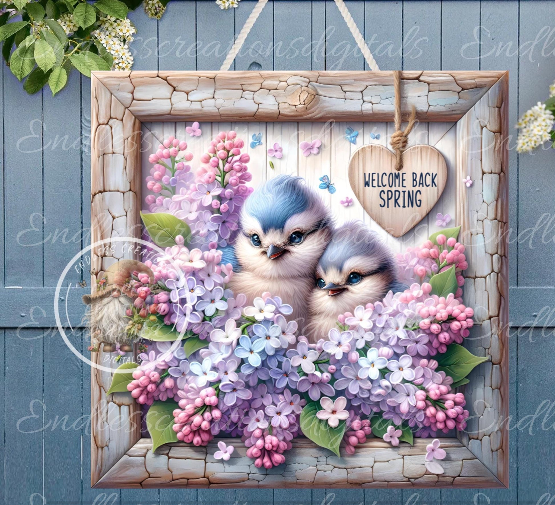 SQUARE SPRING LILACS Wreath Sign, door hanger, wind spinners slate for sublimation high resolution 2 files for download 1 add your own text
