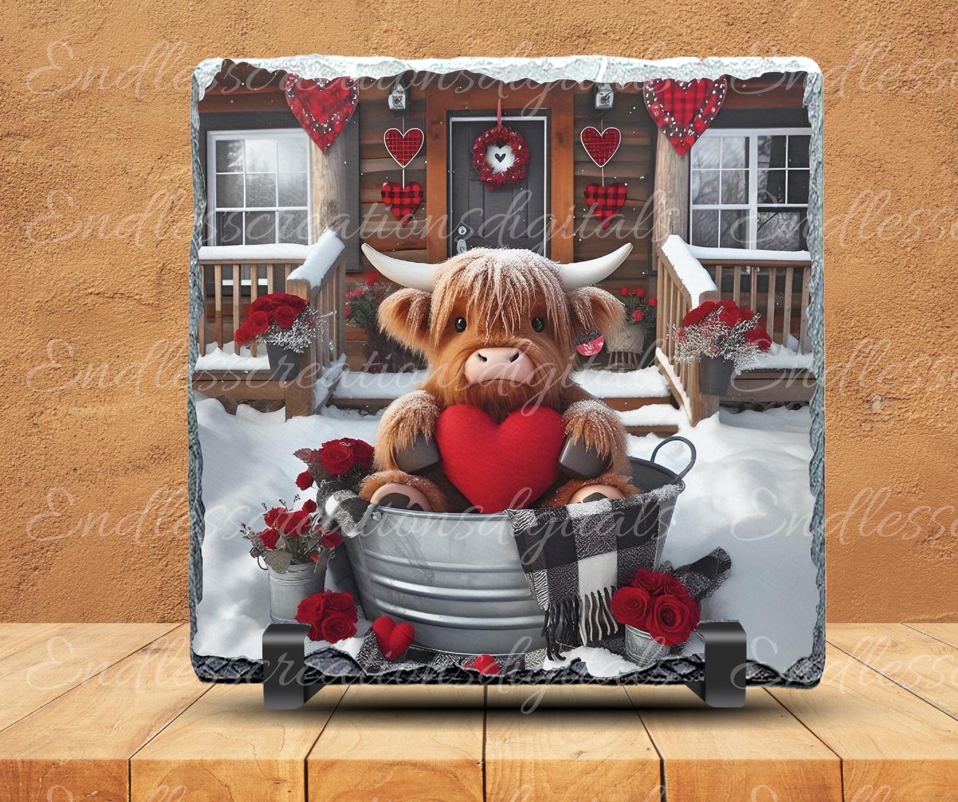 Valentines Highland Cow Red Truck, digital download only, 2 files, 1 blank for your own text, 300 DPI