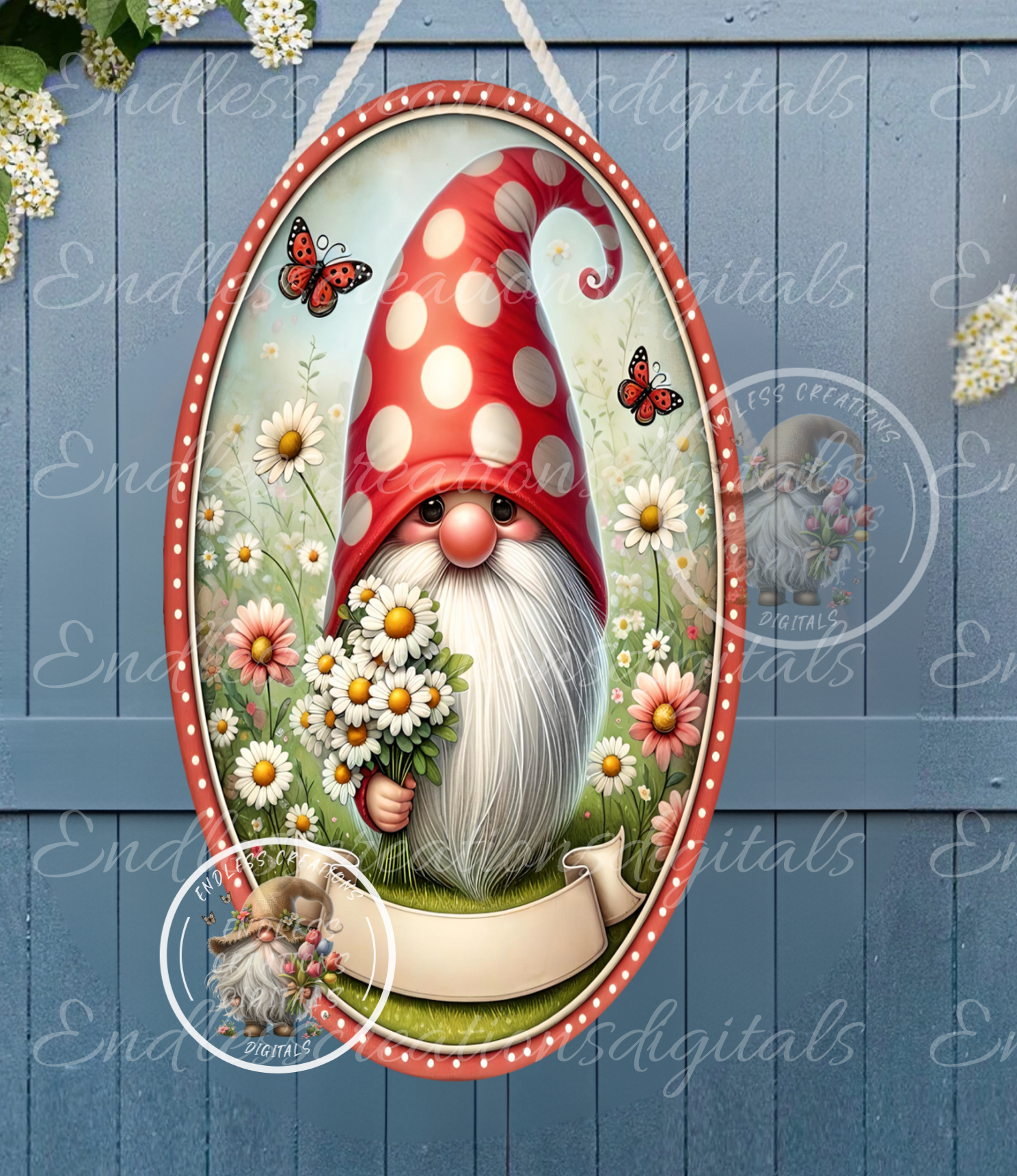 ADORABLE WELCOME DAISY LADYBUG GNOME FLORAL OVAL IMAGE THAT WILL LOOK STUNNING ON YOUR NEXT SUBLIMATION PROJECT. IMAGE IS OF EXCELLENT HIGH QUALITY 300 DPI!!