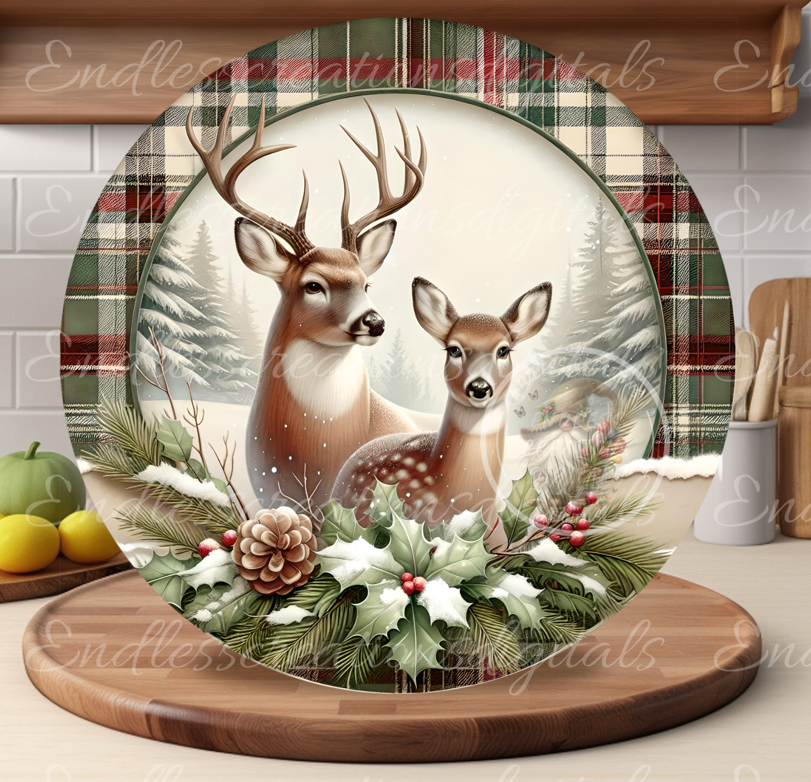 WINTER DEER SCENE DESIGN BUNDLE WILL LOOK STUNNING ON YOUR NEXT SUBLIMATION PROJECT. USE ON GLASS CUTTING BOARDS, ROUND DOOR HANGERS, WREATH SIGNS, ORNAMENTS, GIFT TAGS. IMAGES ARE OF EXCELLENT HIGH QUALITY 300 DPI COMES WITH 2 AMAZING DOWNLOADS INCLUDING 1 BLANK